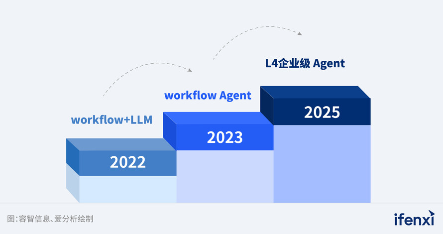 l 容智信息在企业级智能体技术的演进上,经历了明确的阶段性发展,形成了基于大模型与流程管理的平台能力。