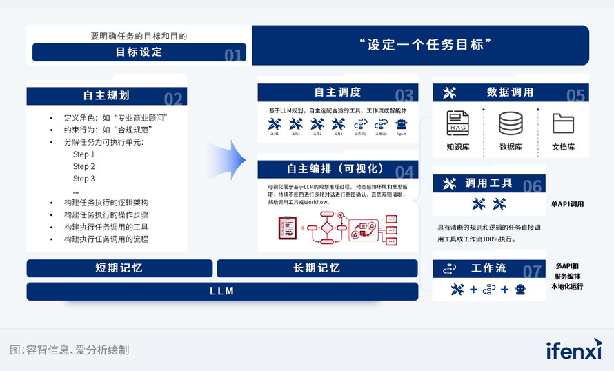2022年 (Workflow+LLM) : 容智信息将大模型能力融入BPM业务流程管理系统,旨在解决传统RPA技术在复杂、高变场景中适应性差、规则固化的问题。此阶段形成了智能体技术的早期基础,为金融、政务等行业的复杂业务流程提供了智能化支持。