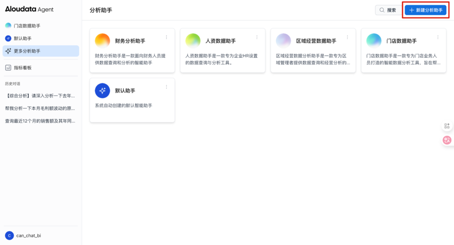Aloudata Agent 深度融合专业领域业务知识,可以按照不同业务职能或数据领域,帮助不同业务角色在统一数据底座上,创建个性化的智能数据分析助手,如门店数据助手、财务分析助手、区域经营数据助手、人资数据助手,更直接地获取所需的数据和分析报告。