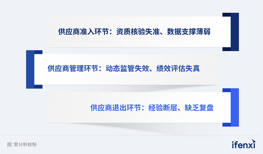 供应商生命周期管理分为准入、管理、退出三个环节,企业在每个环节都面临困局。