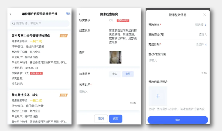 对于燃气企业而言,其安检人员在使用内置标准化检查表与行业知识库的智能助手后,有效避免了现场检查中的漏检与误判,同时系统对隐患整改环节的全程追踪,确保了企业安检质量的可控与闭环管理效率的提升。