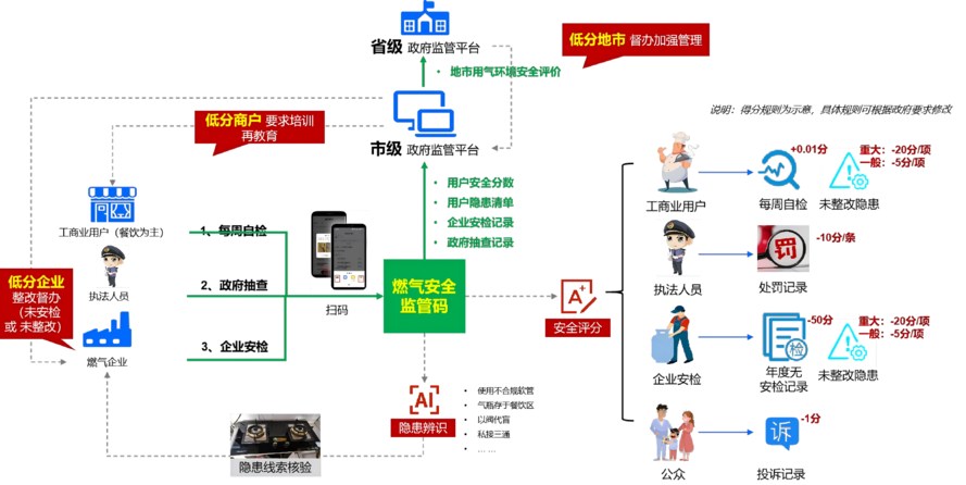 某市燃气监管部门在引入新智聚安的解决方案后,通过以燃气安全监管码为统一入口的协同机制,有效破解了长期存在的治理孤岛难题。这一实践的核心在于,通过赋予不同参与方专属的智能能力,实现了政府、燃气企业、商户及公众的高效联动,从而将传统被动响应的管理模式转变为主动预防、协同共治的新范式。