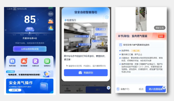 而在商户端,简单的扫码自查流程配合AI拍摄指引与自动隐患识别,极大降低了商户的参与门槛,使其从被动的管理对象转变为主动的风险防范者,有效激活了用户端的自查动力,形成“要我安全”到“我要安全”的行动转变。