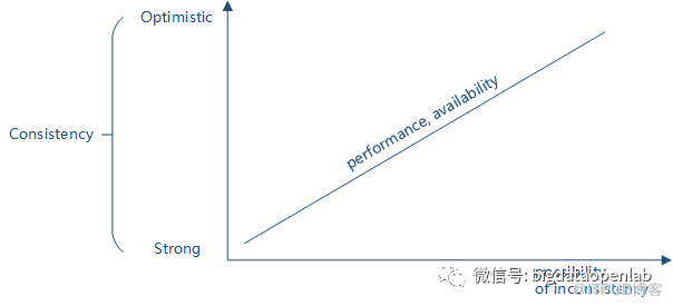 另外的两个比较重要的功能特性是分布式存储的事务能力和安全能力。存储本身如果支持事务特性(如兼容POSIX文件协议),就可以比较方便地给上层有文件事务操作需求的应用直接开放。不过客观地说,事务特性会对存储的性能、可用性有一定的影响,如下图所示,因此很多分布式存储在设计上都放弃了事务特性,或者选择Optimistic Consistency的事务实现。