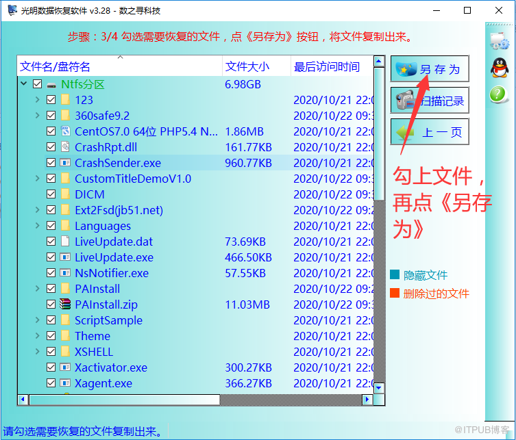 步骤3:将需要恢复的文件打钩,右击选择《复制勾选的文件》,软件会将打钩的文件COPY出来。