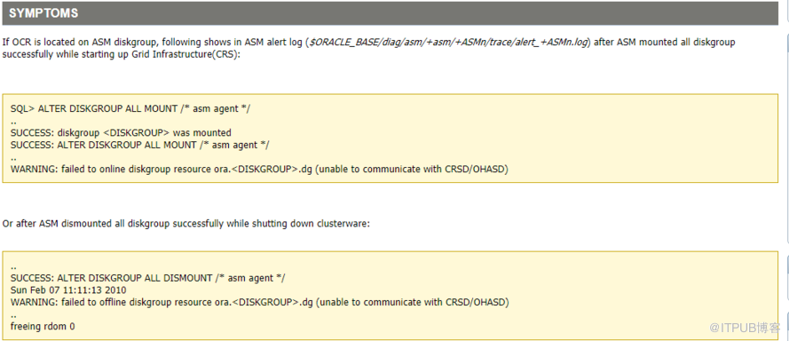 8 本文解决方法参照Oracle的官方文档《ALERT.LOG for ASM Shows "WARNING: failed to online diskgroup