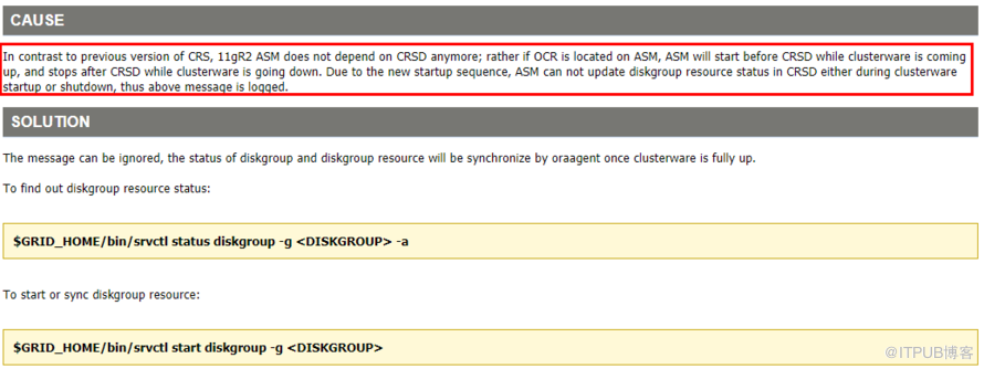说明从11.2.01以后,集群的启动顺序发现变化,且不依赖与ASM磁盘组,故导致刷新失败。