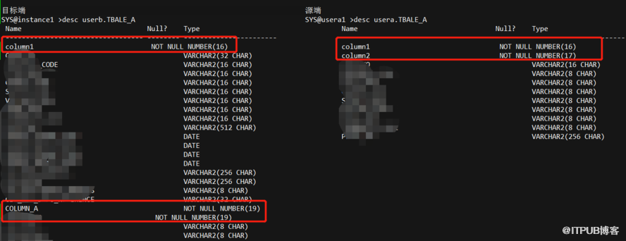 4 由于以上报错信息,没有说明哪个列的数据精度有问题,则需要对比源端和目标端的表结构,将number类型的进行比对