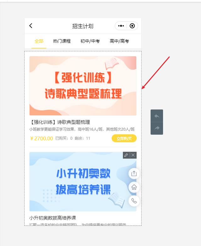 在招生计划中,我们可以根据自己的实力可以设置相应的教学或者培训课程,让自己的学生通过招生计划进行购买相应课程。
