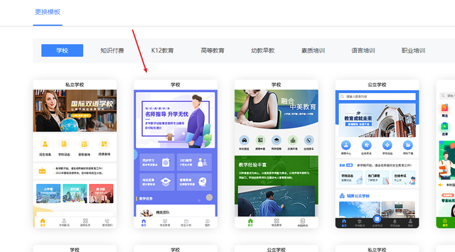在产品中心页面中,打开教育系统选项,在模板页面中,就可以找到学校模板。