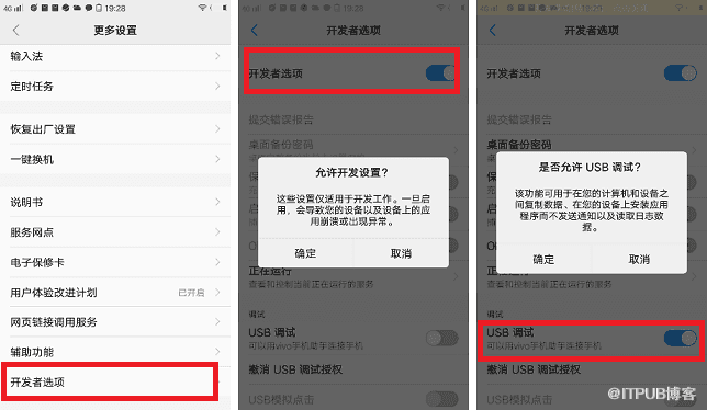 在桌面打开「设置」,然后找到「关于手机」,点开之后找到「版本号」,连敲7次将使手机处于开发者模式。之后返回到「设置中」,找到「更多」,可以看到手机会显示出「开发者选项」,点击进去之后,启动「USB调试模式」,并在提示框中点击「确认」。