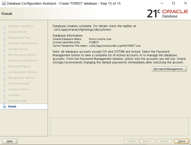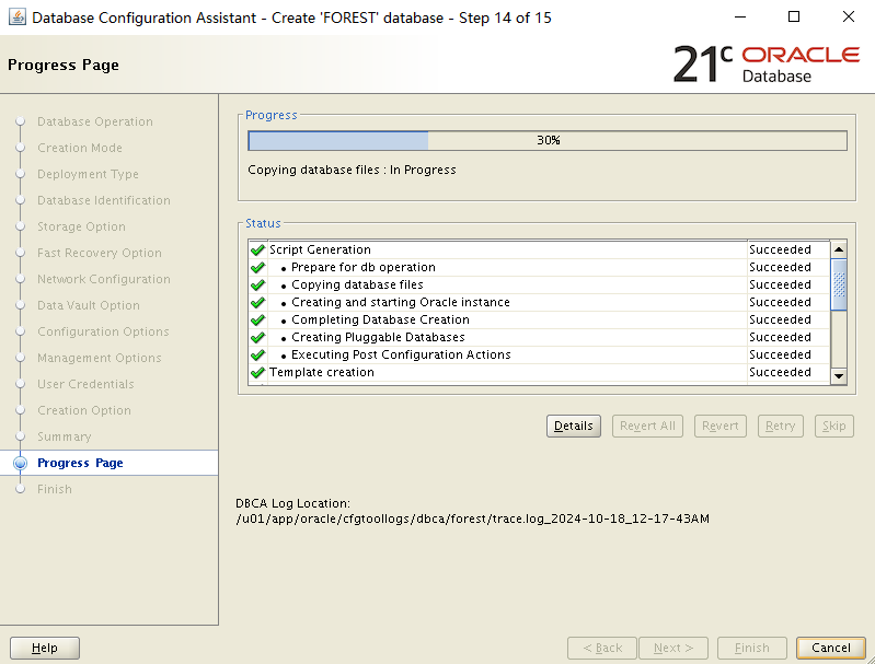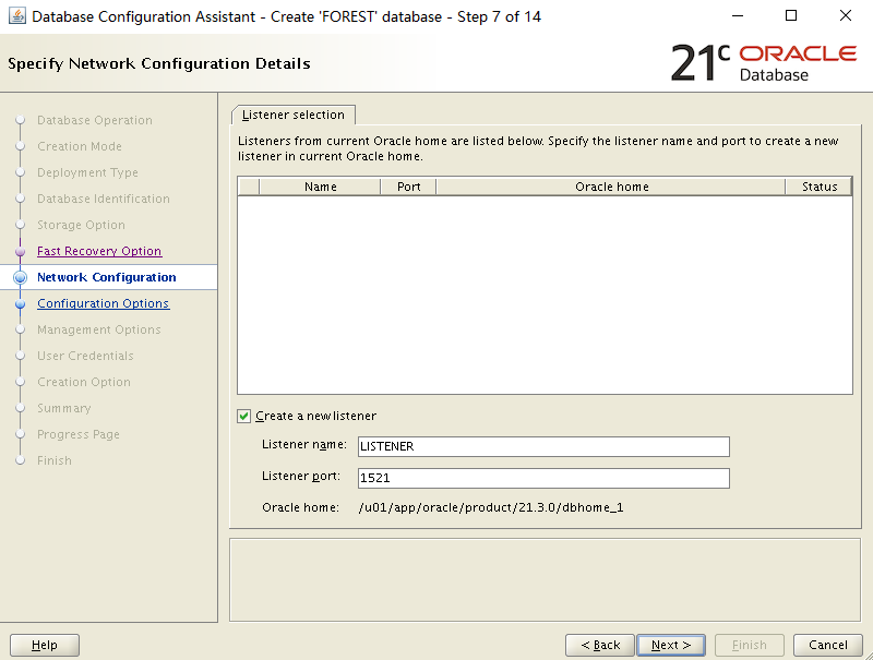 [oracle@forest ~]$ /u01/app/oracle/product/21.3.0/dbhome_1/bin/dbca