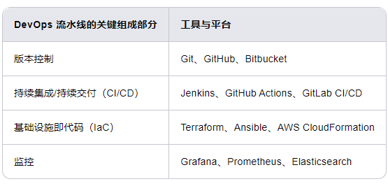 自动化以及适当的工具使团队能够成功执行DevOps原则。设计良好的 DevOps 管道通常包括: