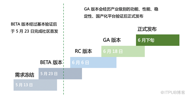 Anolis OS 8.6 经历了需求冻结、BETA 版本、RC 版本、GA 版本及正式发布阶段。在 5 月 23 日完成 BETA 版本的首发后,RC、GA 版本还进行了产业级别的功能、性能、稳定性、国产化平台等验证覆盖。