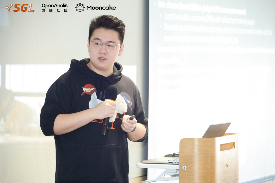 香港科技大学博士生、阿里巴巴 ROLL 团队学术实习生赵予珩带来 了 《ROLL:面向大规模 AgenticRL 的异步解耦与异构算力调度实践》主题分享。赵予珩 介绍了阿里巴巴自研强化学习框架 ROLL 及其针对 AgenticRL 异构负载的深度优化方案,并重点解读了如何通过异构硬件亲和性调度、细粒度异步编排以及状态感知的按需弹性部署,攻克大规模场景下的通信与计算瓶颈。此外,赵予珩与现场嘉宾们共同探讨了 ROLL 与 Mooncake 存算分离架构结合的未来演进,进一步释放大规模 RL 后训练的潜力。目前,ROLL 已在三千卡集群、千亿参数 MoE 模型上实现了生产级的极 致吞吐。