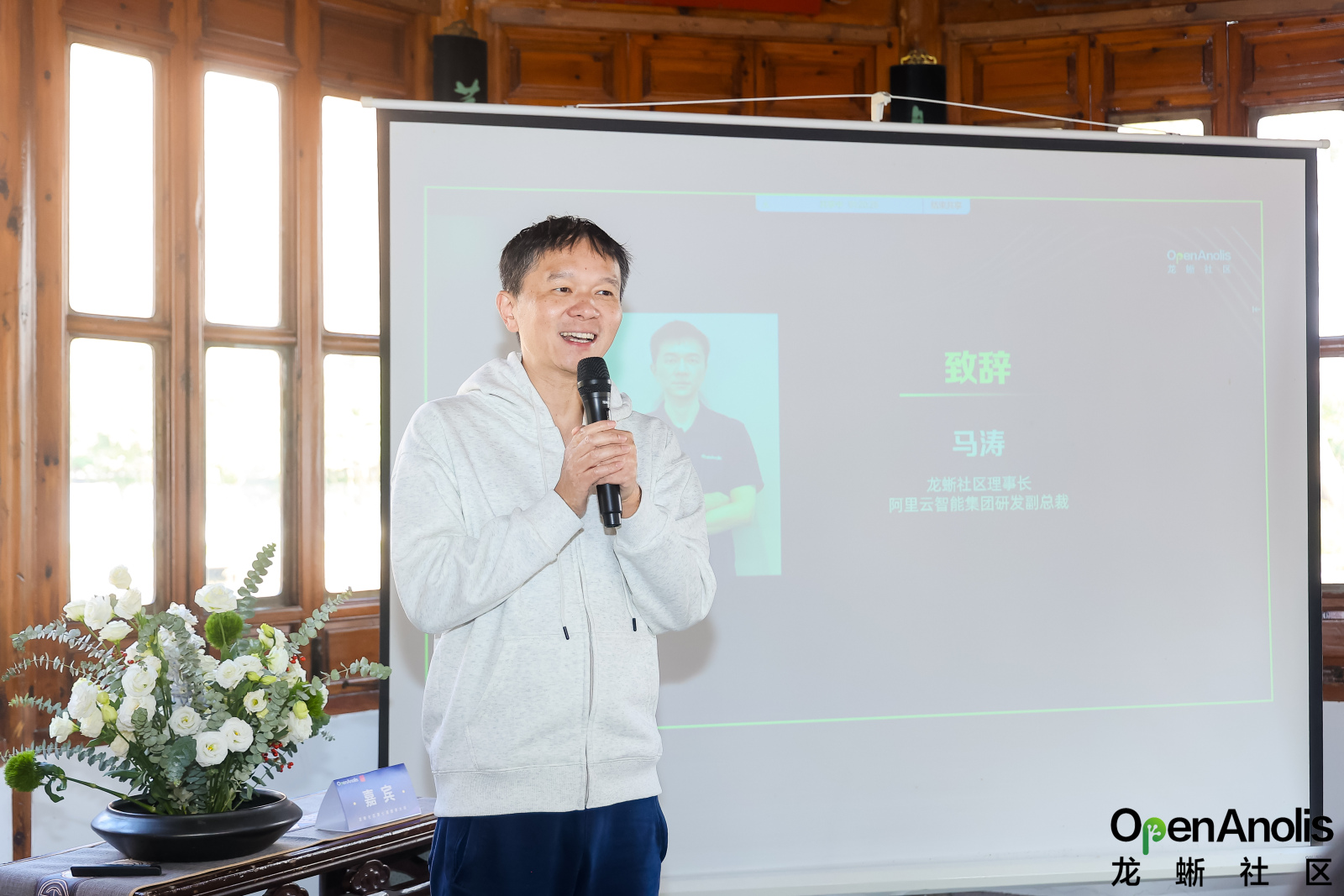 在西湖活水环抱的郭庄相聚,浙江省及杭州市相关领导与理事长马涛共同做了开场致辞。作为江南园林营造技艺的典范,郭庄以"咫尺山林"的造景智慧,将西湖烟雨凝练为天人合一的东方哲学,恰似开源生态兼容并蓄、生生不息的发展之道。