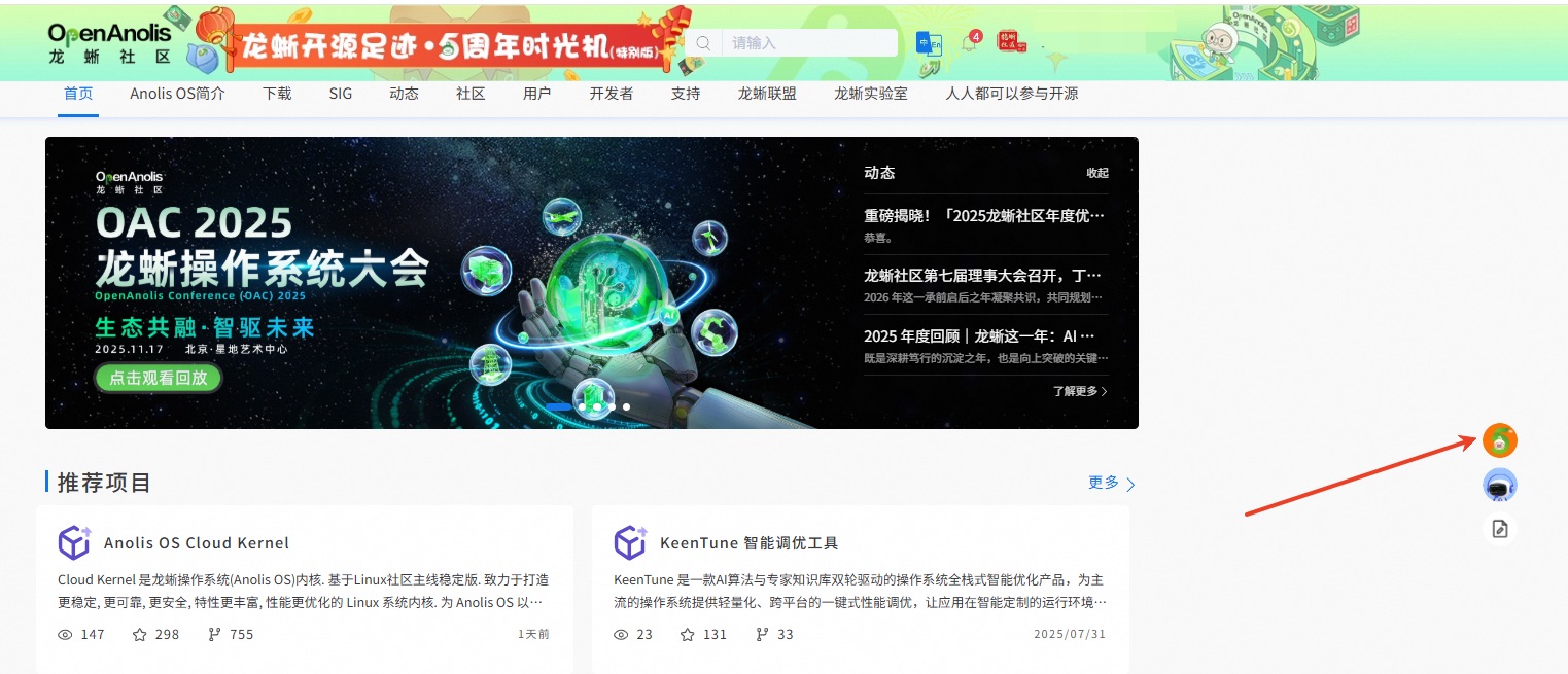 活动期间,首 次登录龙蜥官网,会自动弹出“龙蜥开源足迹”,一键点击开启。若手滑退出或再次进入龙蜥官网,不用担心,可在官网顶部点击“龙蜥开源足迹”图片或官网右侧图标,都可开启活动。