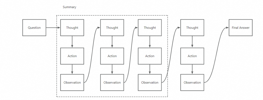 告诉LLM在没有结束之前,需要按照 Question: -> Thought: -> Action: 这样的方式重复N次最终给出结论。