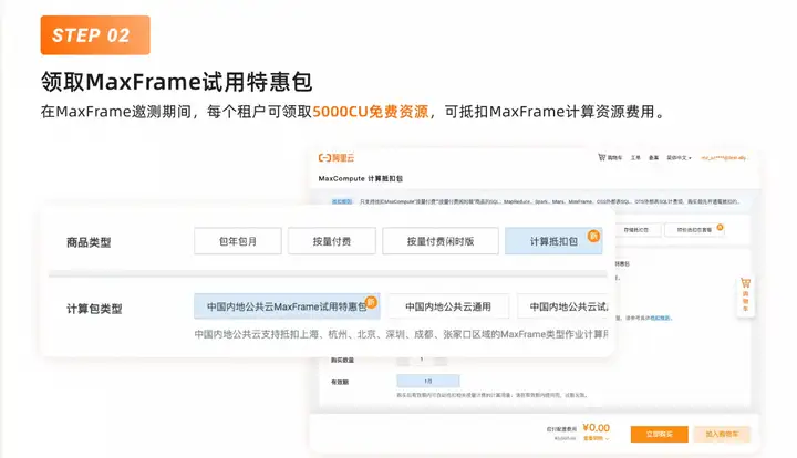 5000CU 免费资源,可抵扣 MaxFrame 计算资源费用。
