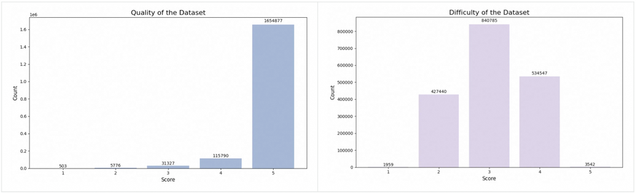 我们的公开的数据约 180 万条原始数据集和 50 万条筛选后的数据集。每一条数据都带有评分。筛选后的数据集是难度大于等于 4 分,质量大于等于 5 分的数据。数据集中的图像采用 base64 编码储存。