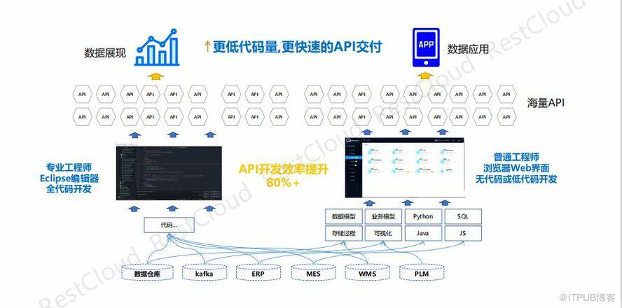 RestCloud API开发平台通过数据模型、SQL、脚本、存储过程可以无代码快速的实现80%的API快速发布,平台本身已含有:注解式开发、API接口自动扫描、验证框架、授权框架、缓存框架、依赖注入框架、多数据源管理框架、多数据库事务管理框架等核心功能,使用本平台普通工程师通过浏览器即可快速实现API的开发和发布,API开发效率提升80%以上。