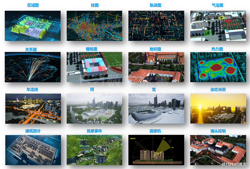 各种可视化图层的添加、删除、更新数据、更新样式功能。图层包括单对象图层、多对象图层和GIS图层。