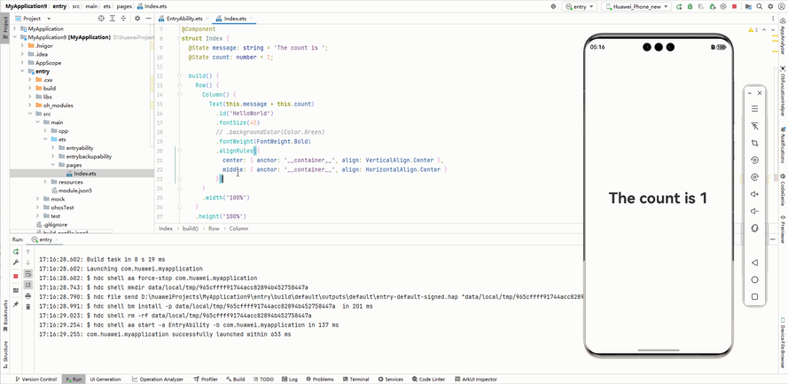增量包。构建完成后IDE会关闭设备上的应用,进行修复更新,结束后再重新拉起应用,完成代码生效。