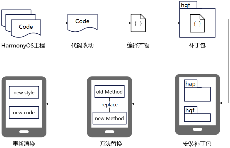 不同,又可分为热修复和冷修复,热修复就是在补丁包完成修复后无需重启应用(ability)即可使修改生效,并可保持应用当