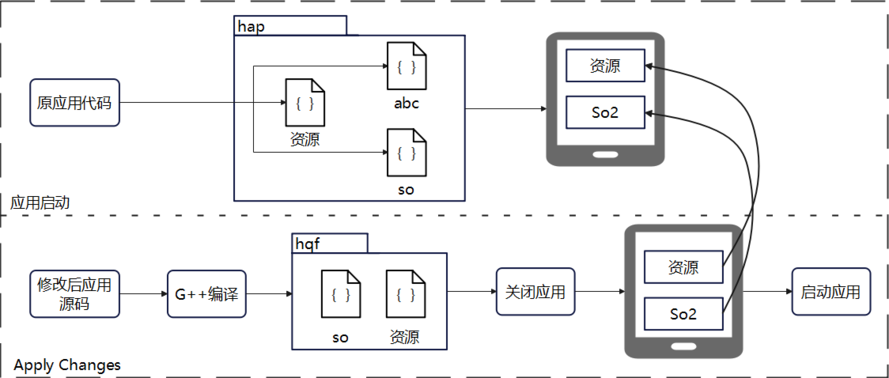 改的增量部分进行编译,具有快速生效的优点,但是为支持C++、资源、SO等复杂的加载场景,Apply Changes还会进行