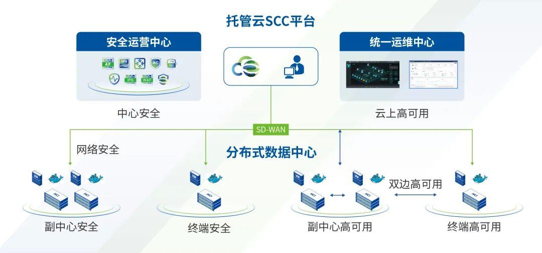 分布式数据中心网络设备远程运维复杂,难以统一策略下发,广域网链路、应用难以可视化监控;广域网安全流量无法可视分析,分支容易被潜伏威胁当做跳板攻击总部,且难以发现和处置。