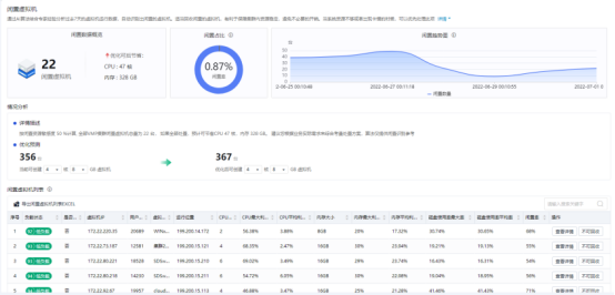 另外,当资源过剩时,也可基于智能算法对闲置虚拟机进行识别,回收对应的资源池或服务器资源。以检测深信服的客户业务系统虚拟机4K+为例,经虚拟机闲置识别检测,发现并处置(含缩容和关机)130+台,0负面反馈。