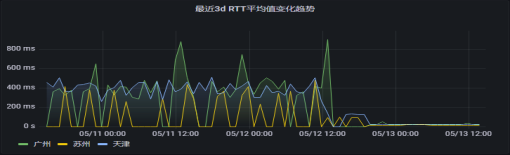 基于RTT时延动态基线进行风险预测,支持智能基线的自动学习,通过对正常状态下指标的历史表现,加以调整后作为基准线,与以后同样时段的实时指标做对比,能根据历史记录自动生成基线,并可按照业务周期潮汐变化规律,形成以日基线、周基线的数据对比,一旦实时数据大于基线比对的一定范围,即生成告警事件,成功预测风险。