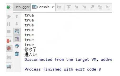 所以这里解释了为什么线程t1加了打印语句之后,t1立刻能感知t2对flag的修改。因为每次打印的时候其都从主内存上获取了最新值,当t2修改的时候,t1立刻从主内存获取了值,所以进入了if语句,并最终能跳出循环。