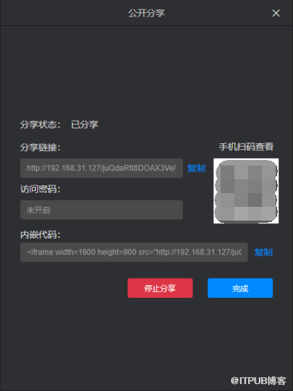 分享完成之后会自动生成分享链接和内嵌代码,点击 “ 复制 ” 可以复制内容。