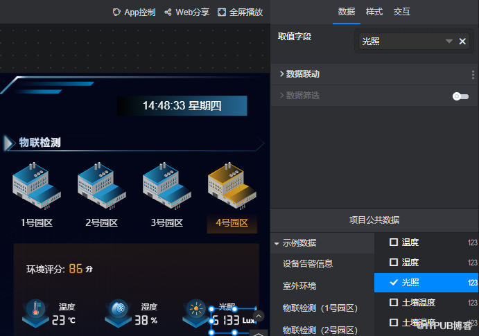 山海鲸可视化利用数据可视化大屏可以辅助农业管理,将农业管理过程中涉及到的各种数据以可视化方式直观呈现,还能通过相关设备实现远程操控。接下来就让我们看一看这样一个大屏是如何制作的。
