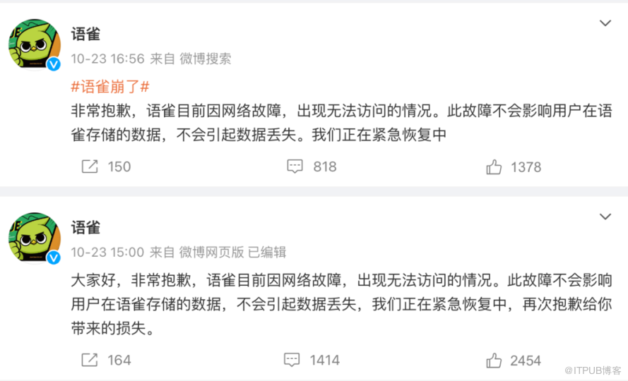打工人的焦虑,已经延伸到在线文档了。近日,语雀P0级故障想必大家都有所体会,宕机近8小时,笔记、离线同步完全不可用。作为用户尤其担心我的文档资料是否会因此消失。