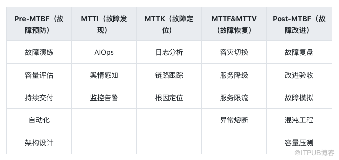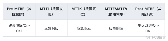而 Post-MTBF 时,我们需要做好故障复盘,总结不足以及进行改进措施落地。