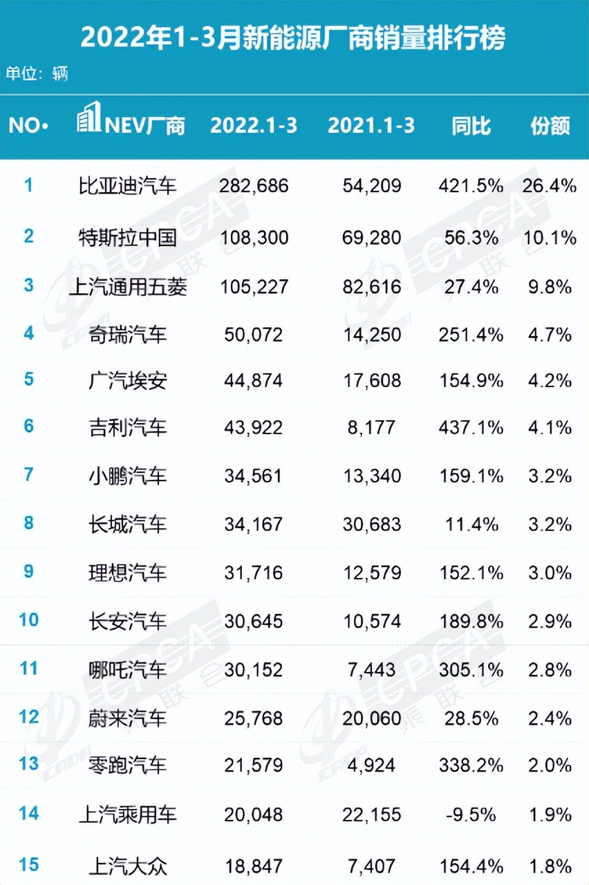 在一季度中,蔚来的销量为25768辆,平均每月甚至不到1万辆,限量增长仅为28.5%。而同期,小鹏与理想的销量增幅分别为159.1%和152.1%。在2022年1-3月新能源厂商销量排行榜上,蔚来汽车已经掉队至第12名,颓势明显。