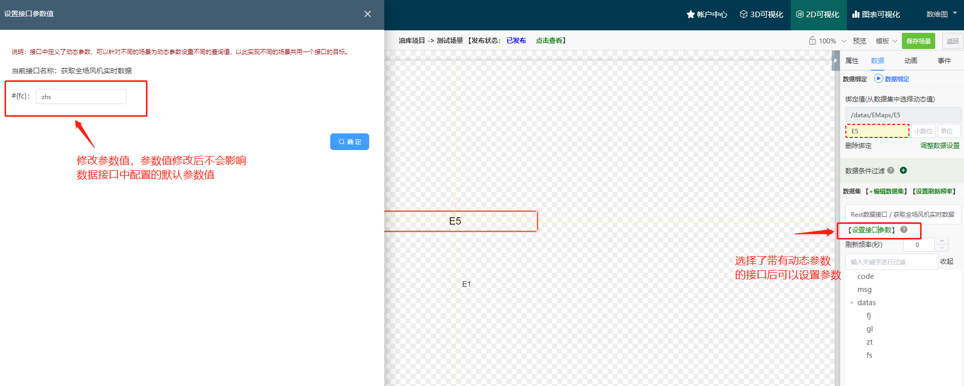 升级后:支持针对不同的场景中绑定当前接口时配置不同的参数,如下图所示: