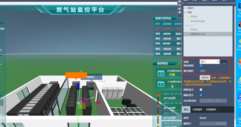 升级后:当 【背景】选择 【图片】类型时也能增加地板,但需要进行 【雾化颜色】选择配置,通过采集和背景图一样的颜色实现雾化效果。