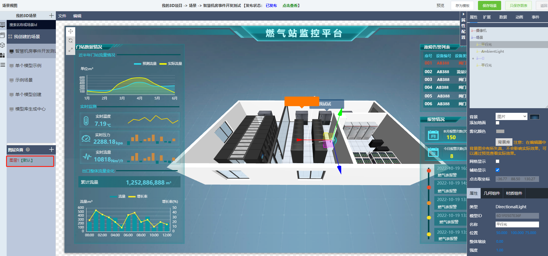 // 一个3D场景支持配置多个可视化的数据图层,然后通过定义事件实现不同图层的切换效果。如下图: