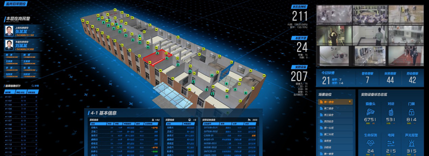 “智慧监狱”基于物联网、云计算、大数据、移动互联网等现代技术,以智慧监所三维可视化综合管理平台为主体,将视频监控系统、应急警报系统、周界控制系统、监区门禁系统、民警巡视管理系统、电化教育(广播)系统、会见管理系统、违禁物品检测系统、讯问指挥系统等各类技术子系统和公安监管场所日常办公系统等相结合的综合性集成系统。同时,融合先进的视频智能分析、视频质量诊断、网络运维管理等前瞻性应用技术,最终实现对在押人员的精细化管理、各类警情及时有效处置、应急指挥迅速响应。