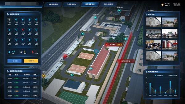 采用张力电子围栏与三维场景相结合,建设周界入侵防范系统,当有非法入侵时,电子围栏将探测信号传输给报警主机,在三维场景中立即产生声光报警,并联动显示现场监控画面。提高安保人员处理事件的及时性。