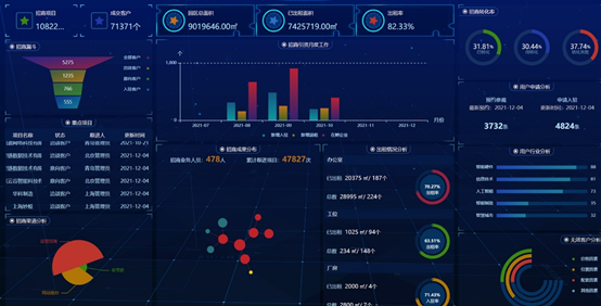 采用数据可视化技术手段,以数据共享、全程监管为理念,建立数据分析模型,生成多维图表,为领导决策提供数据支撑。