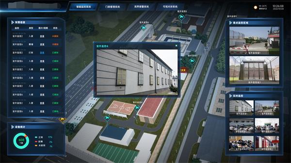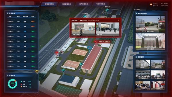 采用张力电子围栏与三维场景相结合,建设周界入侵防范系统,当有非法入侵时,电子围栏将探测信号传输给报警主机,在三维场景中立即产生声光报警,并联动显示现场监控画面。提高安保人员处理事件的及时性。