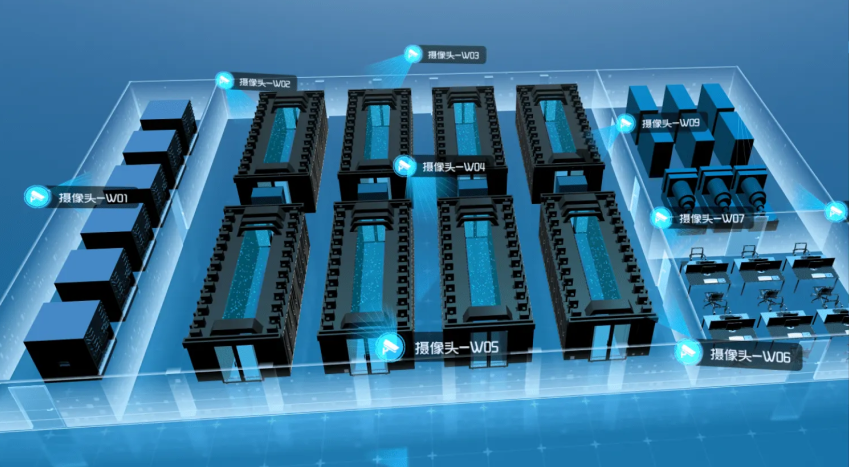 通过对园区机房3D建模,建立智慧机房孪生体,对机房空间、机柜进行三维可视化呈现,展示机房动力监控、环境监控、安全消防监控、网络监控等数据,辅助管理人员掌握机房态势。