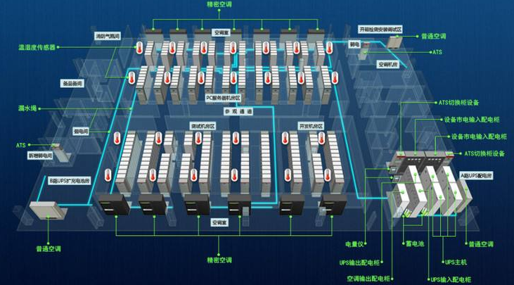 支持集成电源柜、UPS、空调、蓄电池等动力设备及机房温湿度、烟感、红外、水浸环境参数进行监测,实时监测其运行参数,诊断和处理故障,记录和分析相关数据,辅助管理人员提高机房环境监控效力,提升机房运行的可靠性和通信设备的安全性。