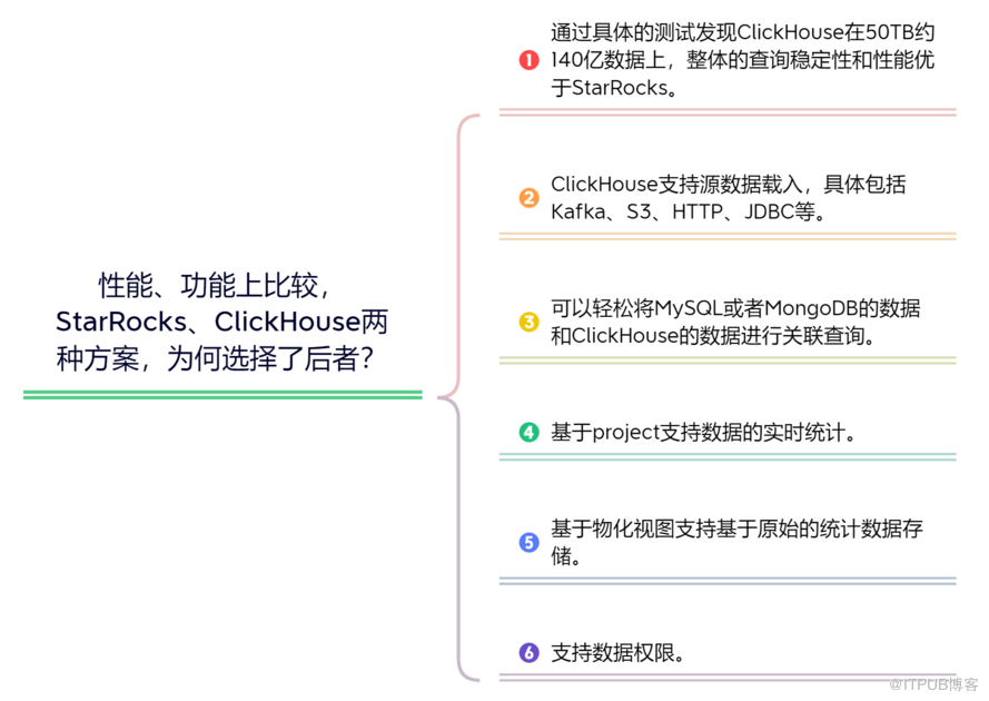 在 S t a r R o c k s 、 C l i c k H o u s e 这 两 种 方 案 中 , 我 们 经 过 性 能 和 功 能 上 的 比 较 , 最 终 选 择 了 C l i c k H o u s e 。 这 里 可 能 有 人 会 想 了 , 那 为 什 么 选 择 C l i c k H o u s e 呢 ? 主 要 原 因 有 这 几 点 。