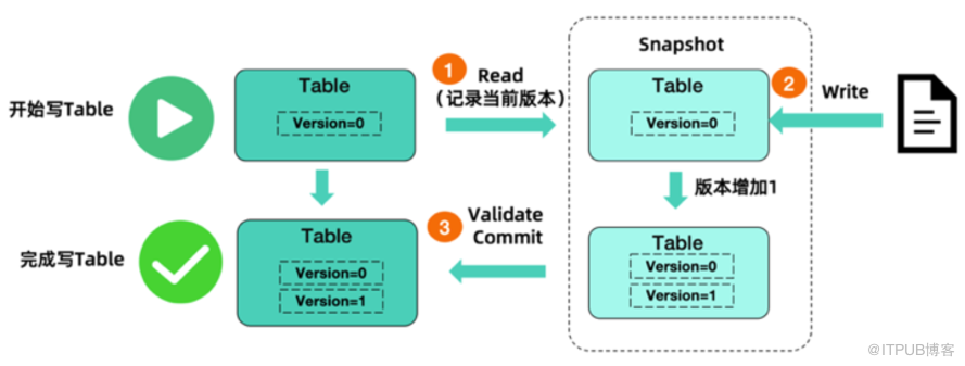 (1)读取:读取最新版本的数据,作为一个数据集的一个Snapshot, 然后定位需要改变的文件,后续写操作在Snapshot的版本上写入新数据。