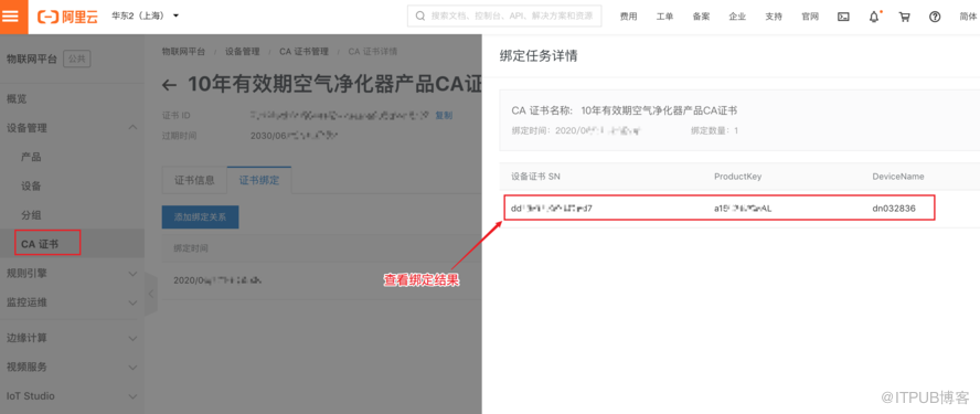 IoT物联网平台控制台证书详情页面,上传CSV文件,完成绑定。